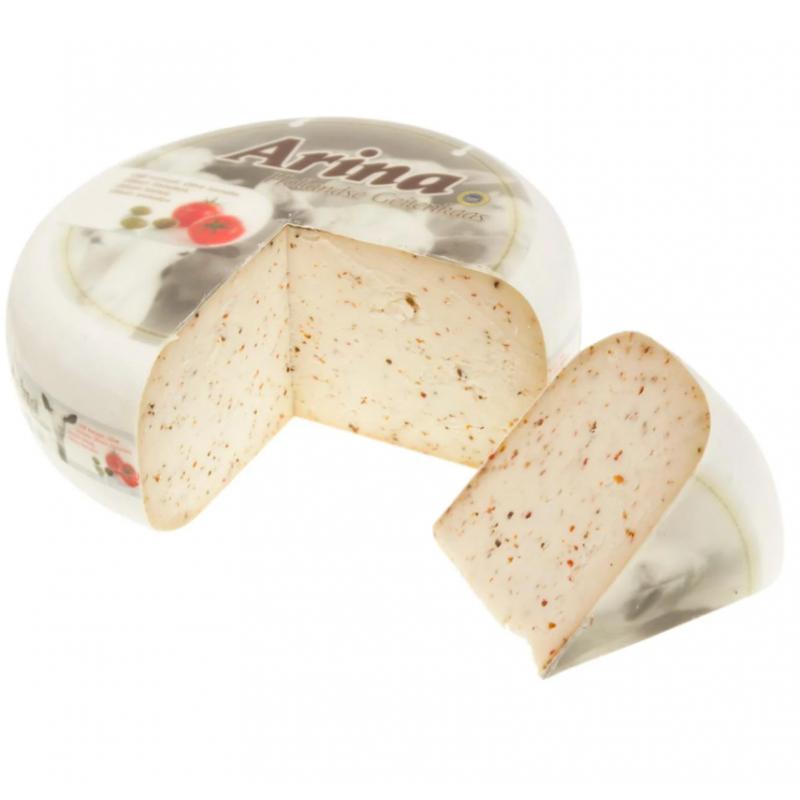 Goat cheese with olives and sun-dried tomatoes can be combined with grapes and plums. This cheese is delicious to eat with honey and also recommended to serve with light white wines with floral aromas, such as Chardonnay. This cheese is served in the form of cheese slices on the plate. Especially reveals the taste and flavor at room temperature. Most cheese is removed from the refrigerator 20 minutes before filing.